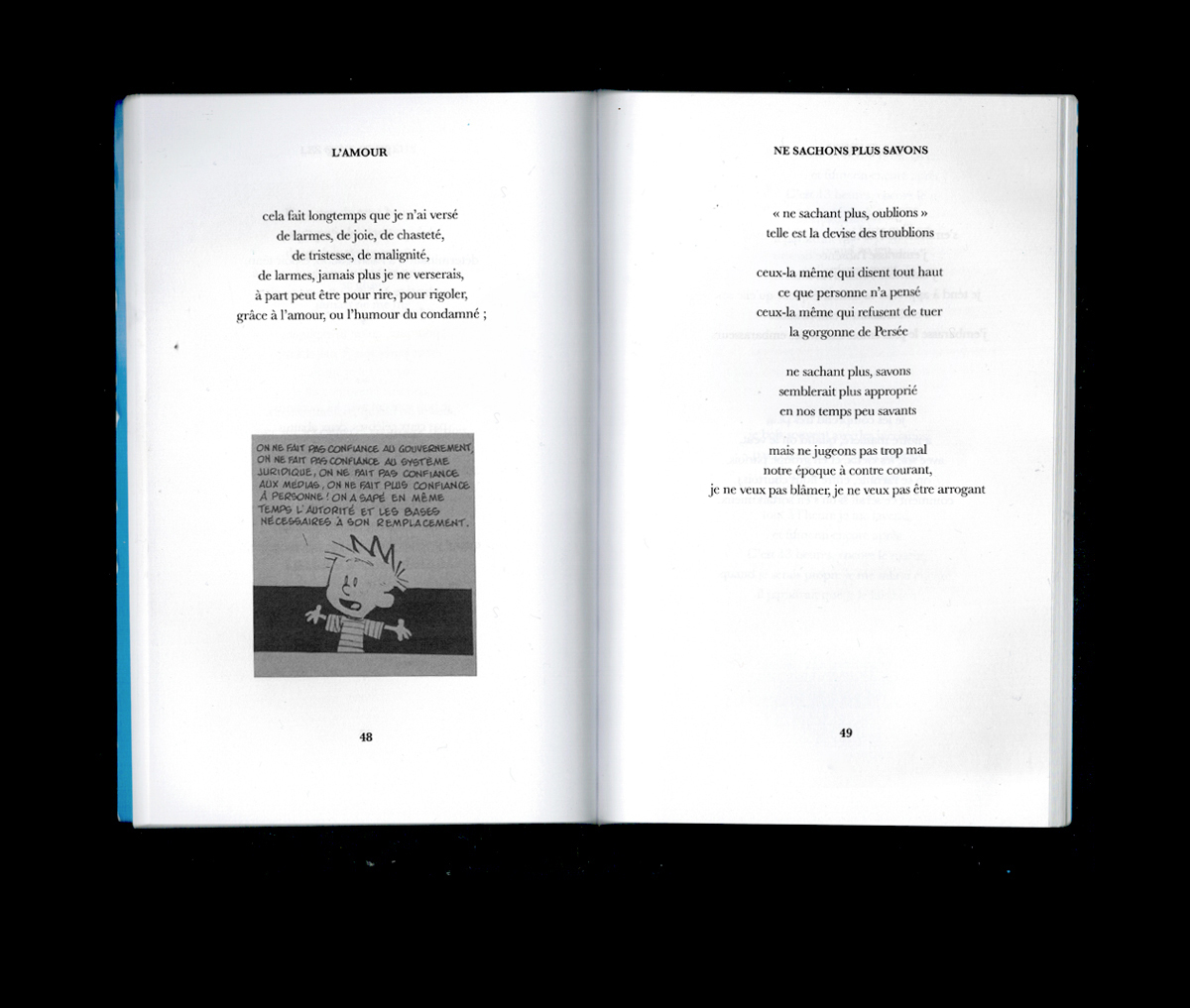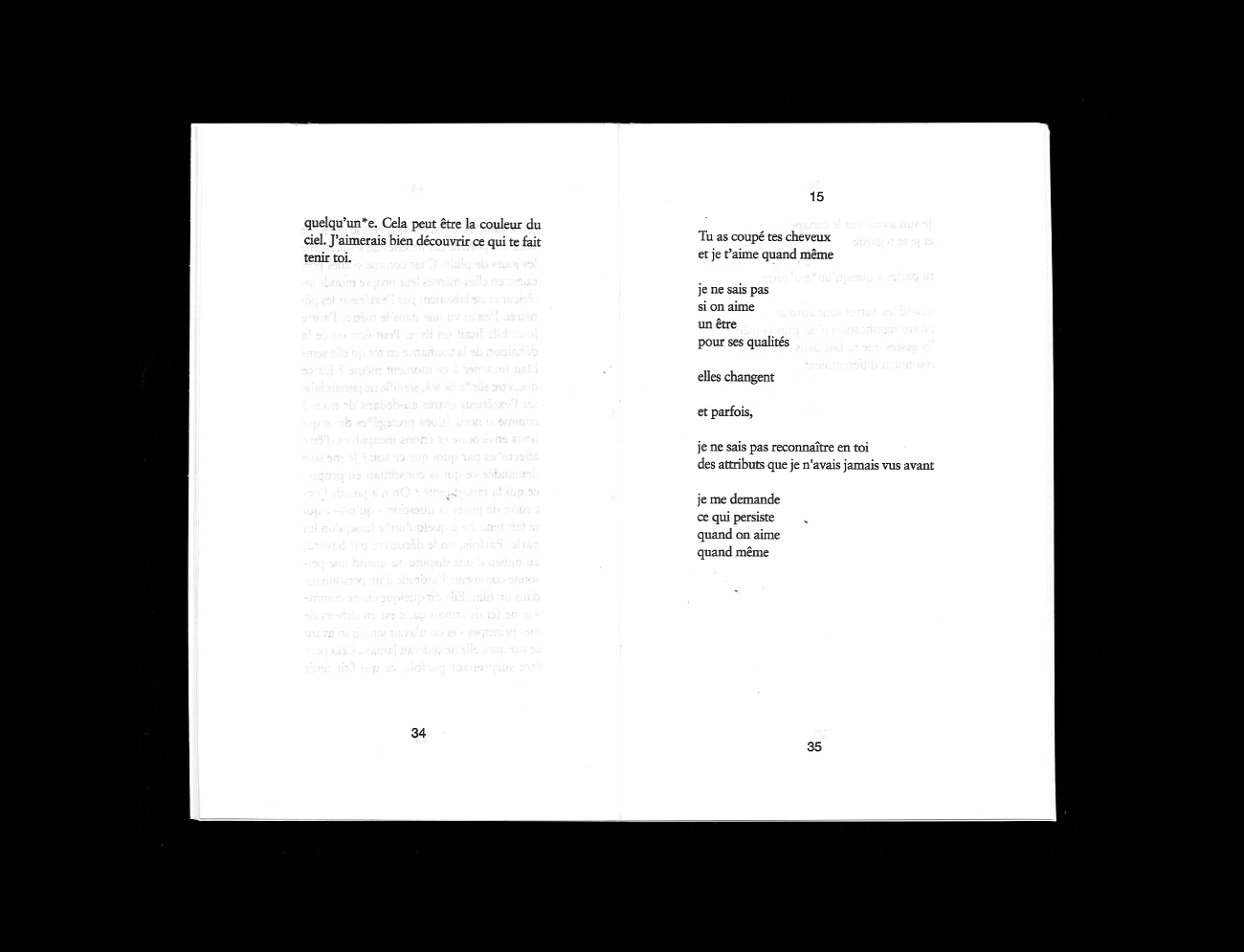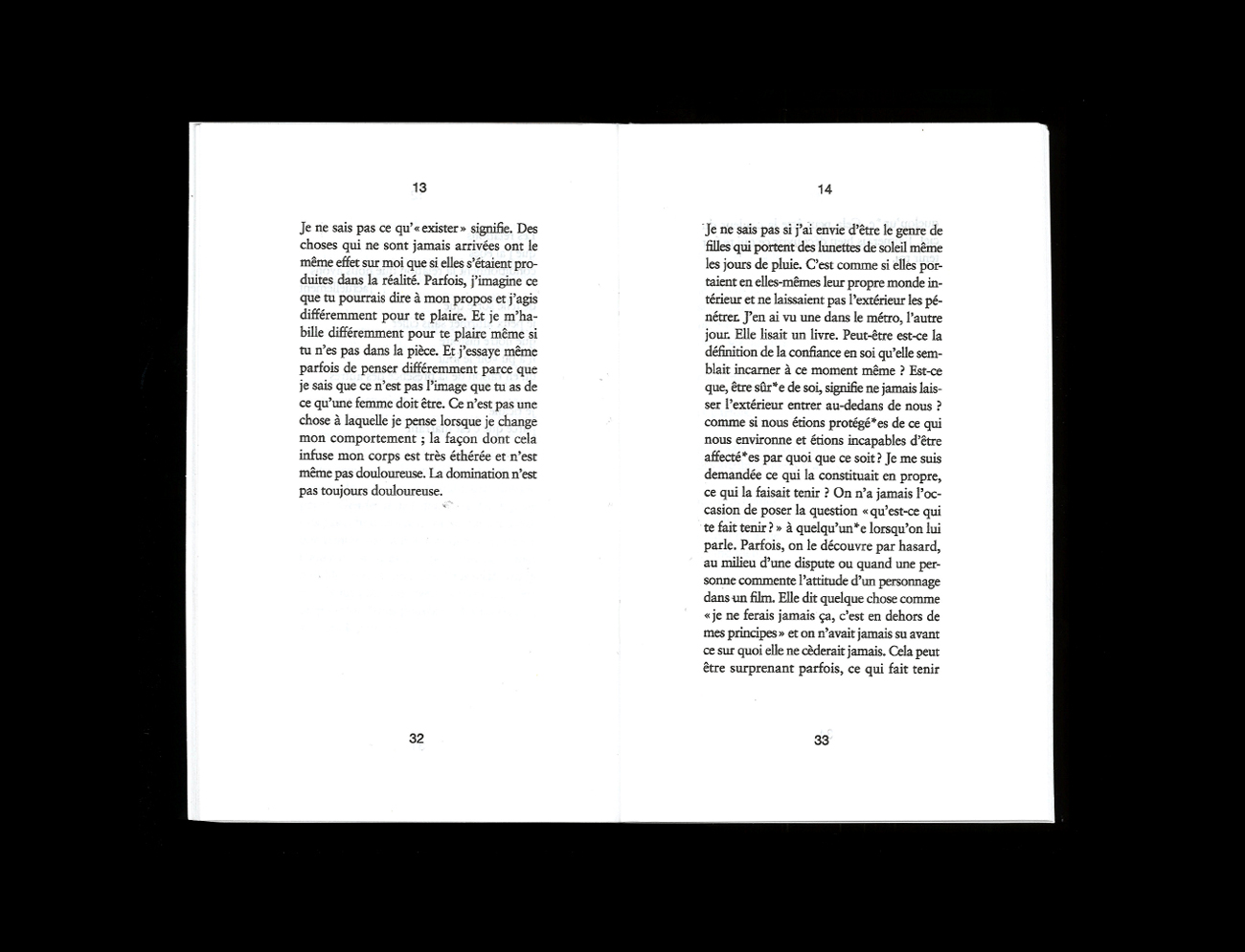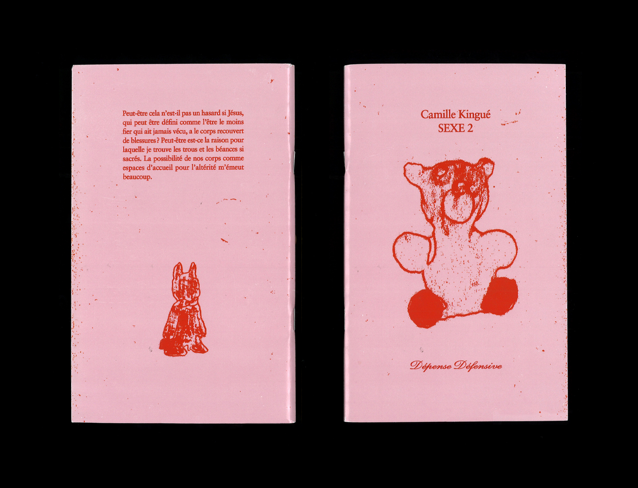 Confession sur le désir (l’action et l’objet du), les liens de mutualité et de résistance, Sexe 2 alterne prose et versification en 27 fragments numérotés à l’adresse plus ou moins dure, plus ou moins sincère, plus ou moins formulée car plus ou moins éloignée du Toi et du Je. Camille Kingué s’attache à révéler, à voir quelque chose à travers son image réelle et virtuelle, agrandie et rétrécie, droite et renversée, déployant une recherche des principes de l’amour (l’amour comme amour, pourquoi est ce qu’il y a de l’amour) où la métaphysique et la compréhension de soi – donc de l’autre – n’ont jamais été aussi sexy. Claire Star Finch, dans la magnifique préface qu’iel signe au début de l’ouvrage, écrit : « Après avoir lu tous les livres de Kingué, je ne sais pas si je crois en “l’amour”, que ce soit en tant que substantif absolu ou en tant que proto-résidu de tout ce que “le sexe” peut signifier. Mais je crois définitivement qu’il faut l’écrire. » Définitivement.
