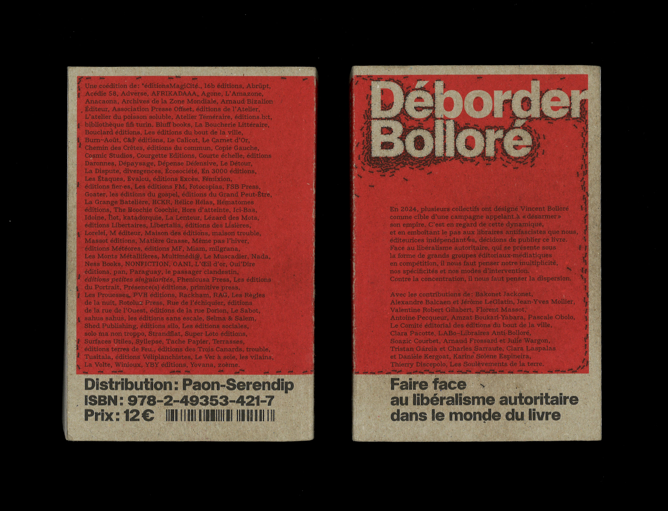 Une coédition de : *éditionsMagiCité., 16b éditions, Abrüpt, Acédie 58, Adverse, AFRIKADAAA, Agone, L’Amazone, Anacaona, Archives de la Zone Mondiale, Arnaud BizalionÉditeur, Association Presse Offset, éditions de l’Atelier, L’atelier du poisson soluble, Atelier Téméraire, éditions b:t, bibliothèque fifi turin, Bluff books, La Boucherie Littéraire, Bouclard éditions, Les éditions du bout de la ville, Burn~Août, C&F éditions, Le Calicot, Le Carnet d’Or, Chemin des Crêtes, éditions du commun, Copie Gauche, Cosmic Studios, Courgette Editions, Courte échelle, éditions Daronnes, Dépaysage, Dépense Défensive, Le Détour, La Dispute, divergences, Écosociété, En 3000 éditions, Les Étaques, Evalou, éditions Excès, Fémixion, éditions fier·es, Les éditions FM, Fotocopias, FSB Press, Goater, les éditions du gospel, éditions du Grand Peut-Être, La Grange Batelière, HCKR, Hélice Hélas, Hématomes éditions, The Hoochie Coochie, Hors d’atteinte, Ici-Bas, Idoine, Îlot, katadorquie, La Lenteur, Lézard des Mots, éditions Libertaires, Libertalia, éditions des Lisières, Lorelei, M éditeur, Maison des éditions, maison trouble, Massot éditions, Matière Grasse, Même pas l’hiver, éditions Météores, éditions MF, Miam, milgrana, Les Monts Métallifères, Multimédi@, Le Muscadier, Nada, Ness Books, NONFICTION, OANI, L’Œil d’or, Oui’Dire éditions, pan, Paraguay, le passager clandestin, éditions petites singularités, Phenicusa Press, Les éditions du Portrait, Présence(s) éditions, primitive press, Les Prouesses, PVH éditions, Rackham, RAG, Les Règles de la nuit, Rotolux Press, Rue de l’échiquier, éditions de la rue de l’Ouest, éditions de la rue Dorion, Le Sabot, sahus sahus, les éditions sans escale, Selma & Salem, Shed Publishing, éditions silo, Les éditions sociales, solo ma non troppo, Strandflat, Super Loto éditions, Surfaces Utiles, Syllepse, Tache Papier, Terrasses, éditions terres de Feu., éditions des Trois Canards, trouble, Tusitala, éditions Véliplanchistes, Le Ver à soie, les vilains, La Volte, Winioux, YBY éditions, Yovana, zoème.