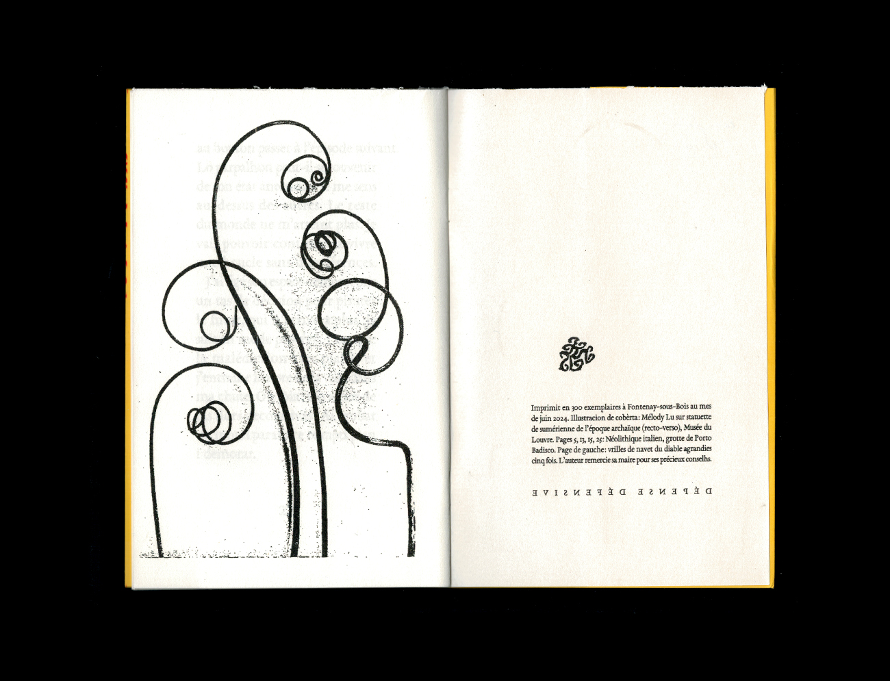 Soufflette est la première parution de la nouvelle collection de poésie de Dépense Défensive. Celle-ci entend présenter un pan de la jeune création littéraire et artistique au sein de petits livres illustrés ; le dessin, la peinture, l'illustration pour sublimer la poésie (l'inverse est vrai également) comme ici avec Mélody Lu qui signe pour ce premier recueil une couverture magnifique.