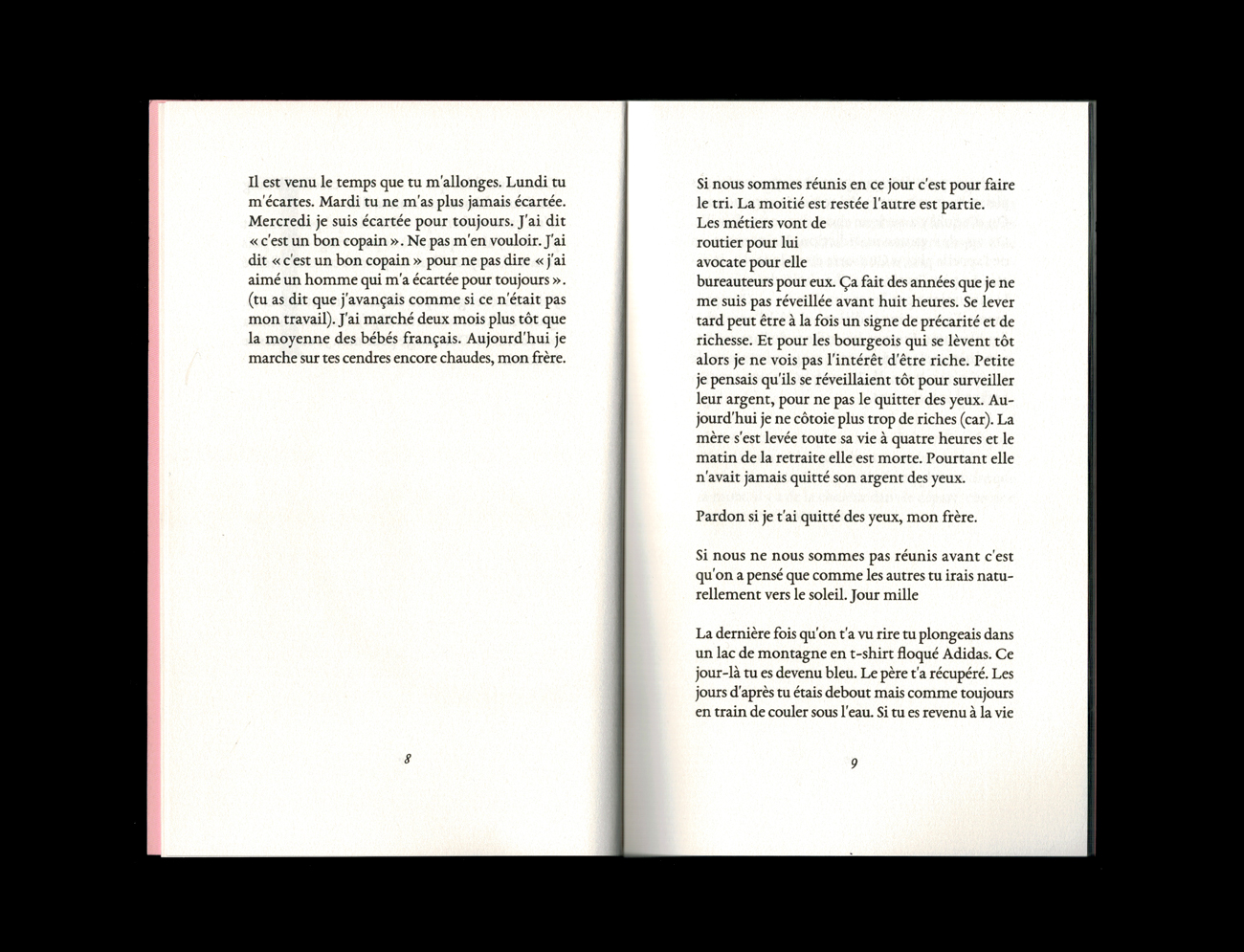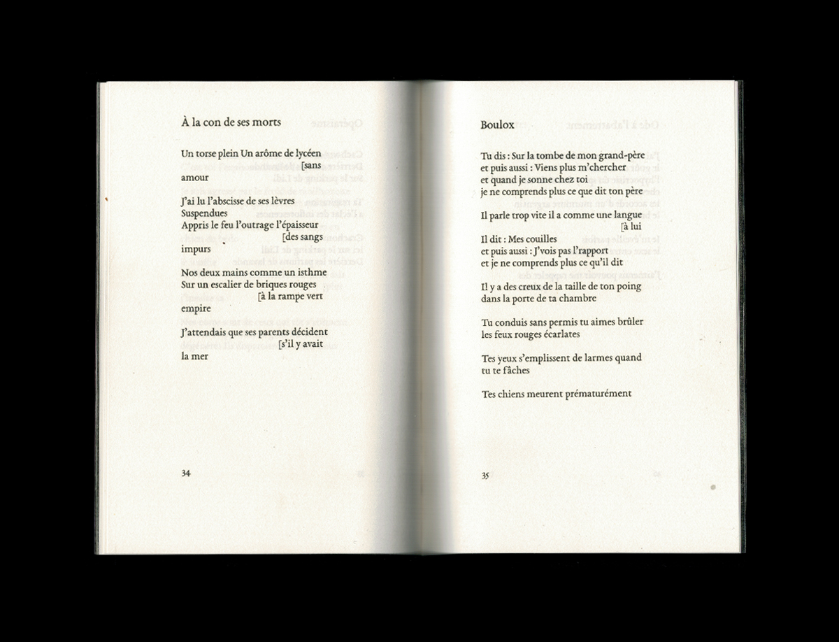 D’eux, il ne reste que les mots de celle qui a croisé leur route. Le crissement de pneus qui sifflent avant un malheur qui tarde à se produire. Sanctification plus que célébration, Oraison funèbre pour Zelda1990 est une tentative de communication au-delà de la matière physique de l’énonciation, un dialogue interne qui convoque « par moment le frère, par moment l’ami parti », toujours la ruine, la consommation de la séparation avec le tout. À travers quatre parties qui font écho à la structure des éloges funèbres de la Grèce antique, Romane Constant réouvre la poésie des plaies larges et profondes que les vers lapidaires d’Hélène Bessette – sur qui l’autrice mène un travail de recherche – ont laissé dans l’histoire moderne de la littérature, et signe un texte bouleversant sur la difficulté des choses qui ne (se) passent pas, la force de celles que l’on voit suspendues par le cou au bord d’une paix impossible à trouver. Oraison funèbre pour Zelda1990 est une douleur croissante, avec écoulement et rougeur.