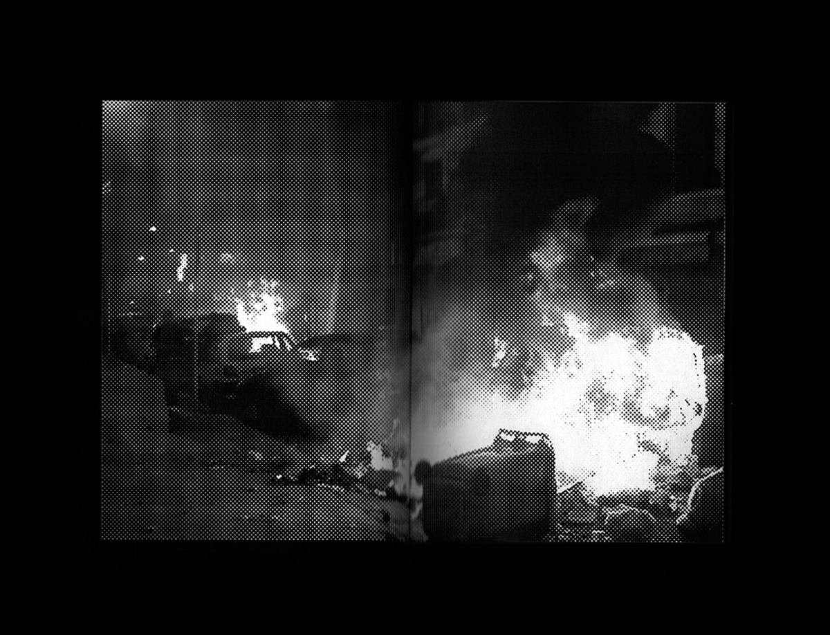 « Des garçons traversent un espace soumis à de fortes contraintes sociales. Ses murs sont sensibles ils recueillent les impressions de la communauté. Un des garçons frappe du talon la base d'un lampadaire alors le garçon s'éteint. »