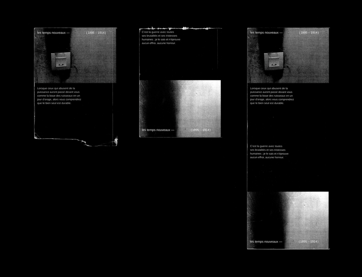 Les temps nouveaux est un hebdomadaire anarchiste fondé en 1895 par Jean Grave, totalisant 982 numéros et 20 années d’existence. Particulièrement bien distribué – autour de 7000 exemplaires – il compte parmi les journaux anarchistes les plus influents du début du siècle. Pensé sous la forme d’une collection personnelle d’articles, l’ouvrage éponyme regroupe vingt-sept textes de quinze auteurs différents et se divise en huit thèmes constitutifs de l’anarchisme socialiste : action, lutte, pouvoir, patrie, idéal, vérité, éducation et art. Le livre est imprimé en double sur sa hauteur et nécessite l’intervention d’un tiers pour en trancher les deux parties, déclenchant ainsi son potentiel propagandaire.