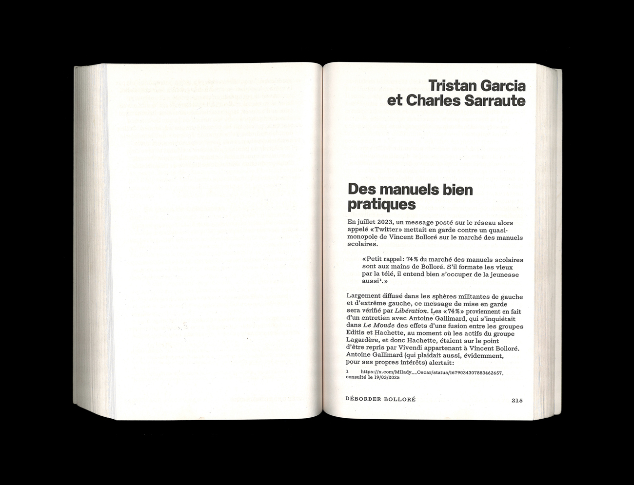 Dans le contexte de la campagne Désarmons Bolloré, et en emboîtant le pas au boycott appelé par les « libraires antifascistes », nous, éditeurices indépendant·es, coéditons collectivement ce recueil pour prendre part depuis notre secteur à la réflexion générale sur le démantèlement de l’empire Bolloré.