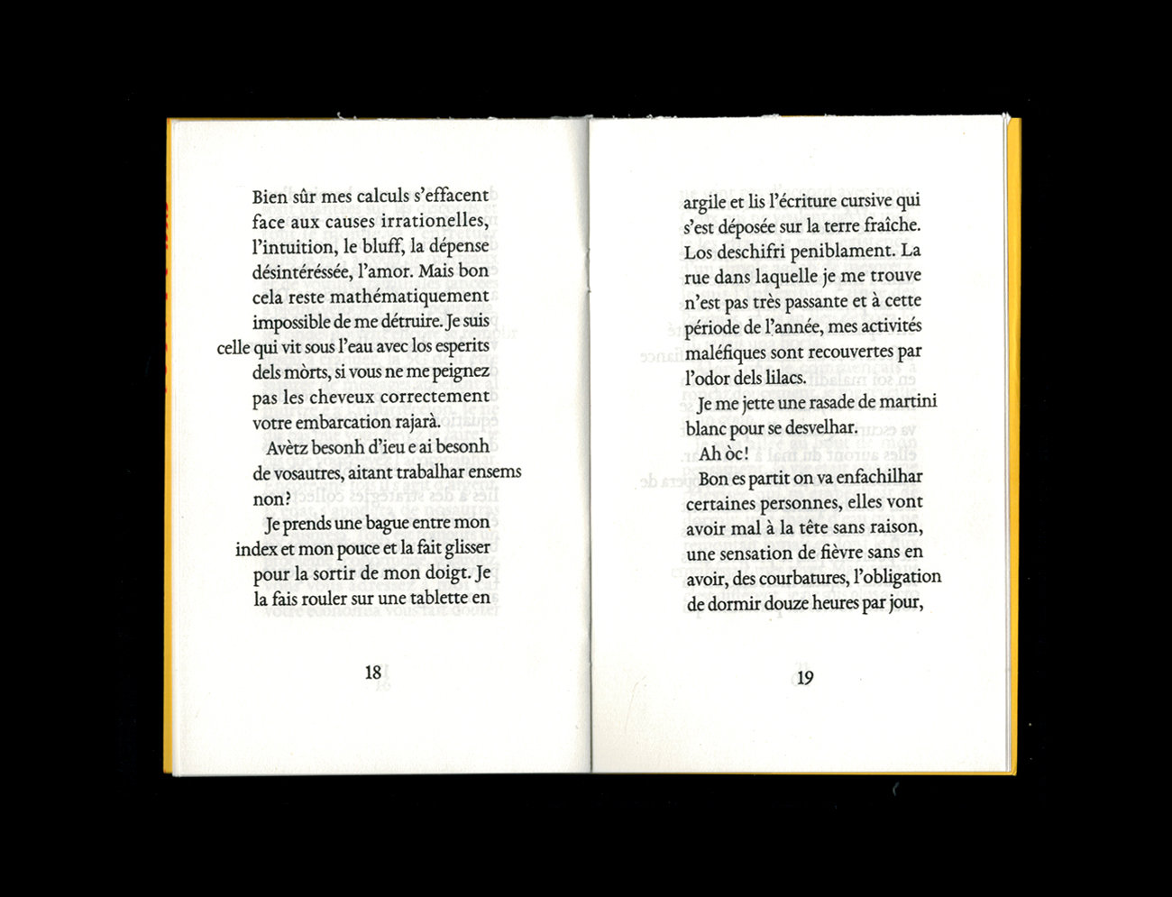 Mystique des rues vides et peu éclatantes des banlieues pavillonnaires, ce court poème en prose interpelle par sa langue sombre. Dans une parodie de messe noire – beigeasse comme le crépis des façades –, Théo Robine-Langlois dépeint le monde mystérieux des maisons individuelles, du repli sur soi démonique, et des vieilles qui marmonnent entre leurs gencives au retour du marché, le panier plein de gros sel et de radis noirs en guise d'hostie. Les mots occitans qui ponctuent le texte comme des conjurations en accroissent l’escur.