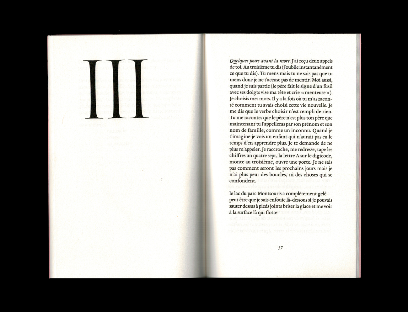 D’eux, il ne reste que les mots de celle qui a croisé leur route. Le crissement de pneus qui sifflent avant un malheur qui tarde à se produire. Sanctification plus que célébration, Oraison funèbre pour Zelda1990 est une tentative de communication au-delà de la matière physique de l’énonciation, un dialogue interne qui convoque « par moment le frère, par moment l’ami parti », toujours la ruine, la consommation de la séparation avec le tout. À travers quatre parties qui font écho à la structure des éloges funèbres de la Grèce antique, Romane Constant réouvre la poésie des plaies larges et profondes que les vers lapidaires d’Hélène Bessette – sur qui l’autrice mène un travail de recherche – ont laissé dans l’histoire moderne de la littérature, et signe un texte bouleversant sur la difficulté des choses qui ne (se) passent pas, la force de celles que l’on voit suspendues par le cou au bord d’une paix impossible à trouver. Oraison funèbre pour Zelda1990 est une douleur croissante, avec écoulement et rougeur.